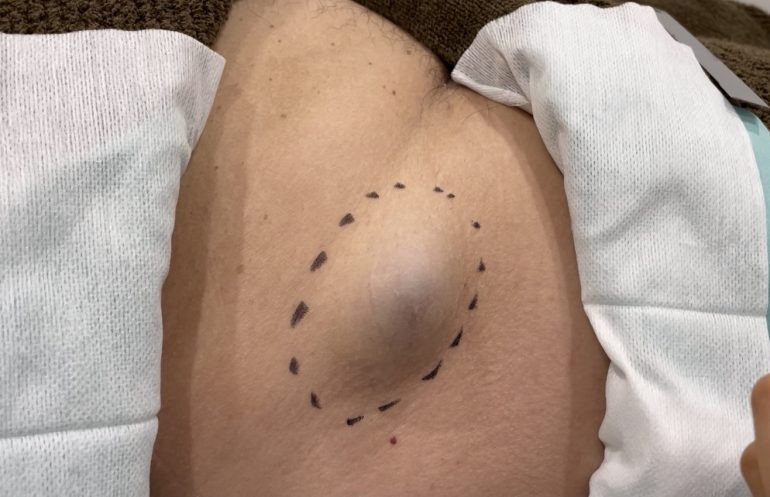 今回の症例は腰部の粉瘤です。動画は下に載せています。