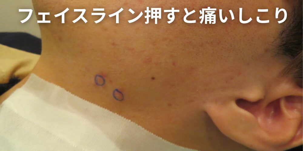 フェイスラインでは神経に近いため、押すと痛みを感じるケースもあります。